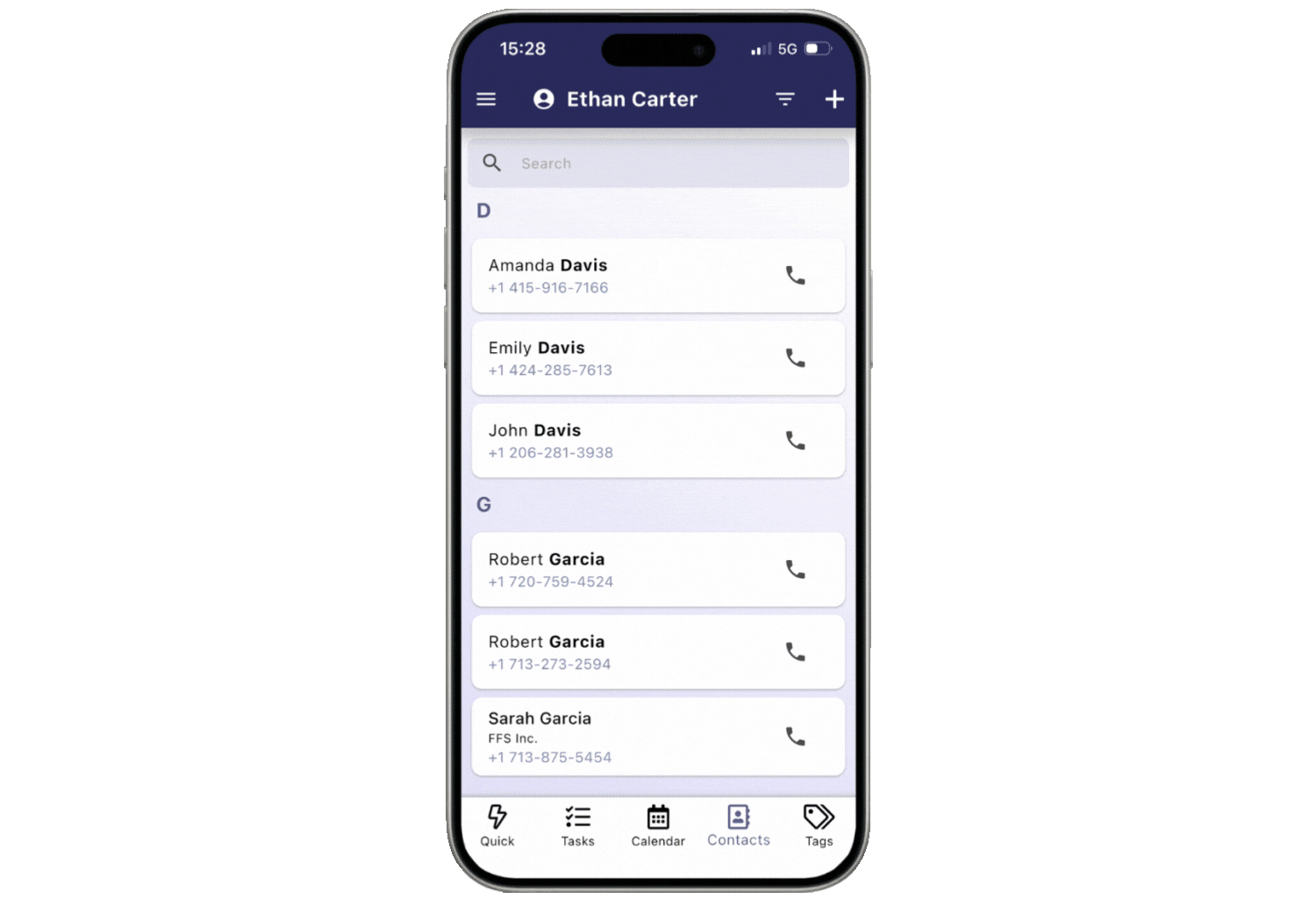 As part of the campaign implementation, you also have the option in the mobile application to “call” specific contacts from a list of specific tags.