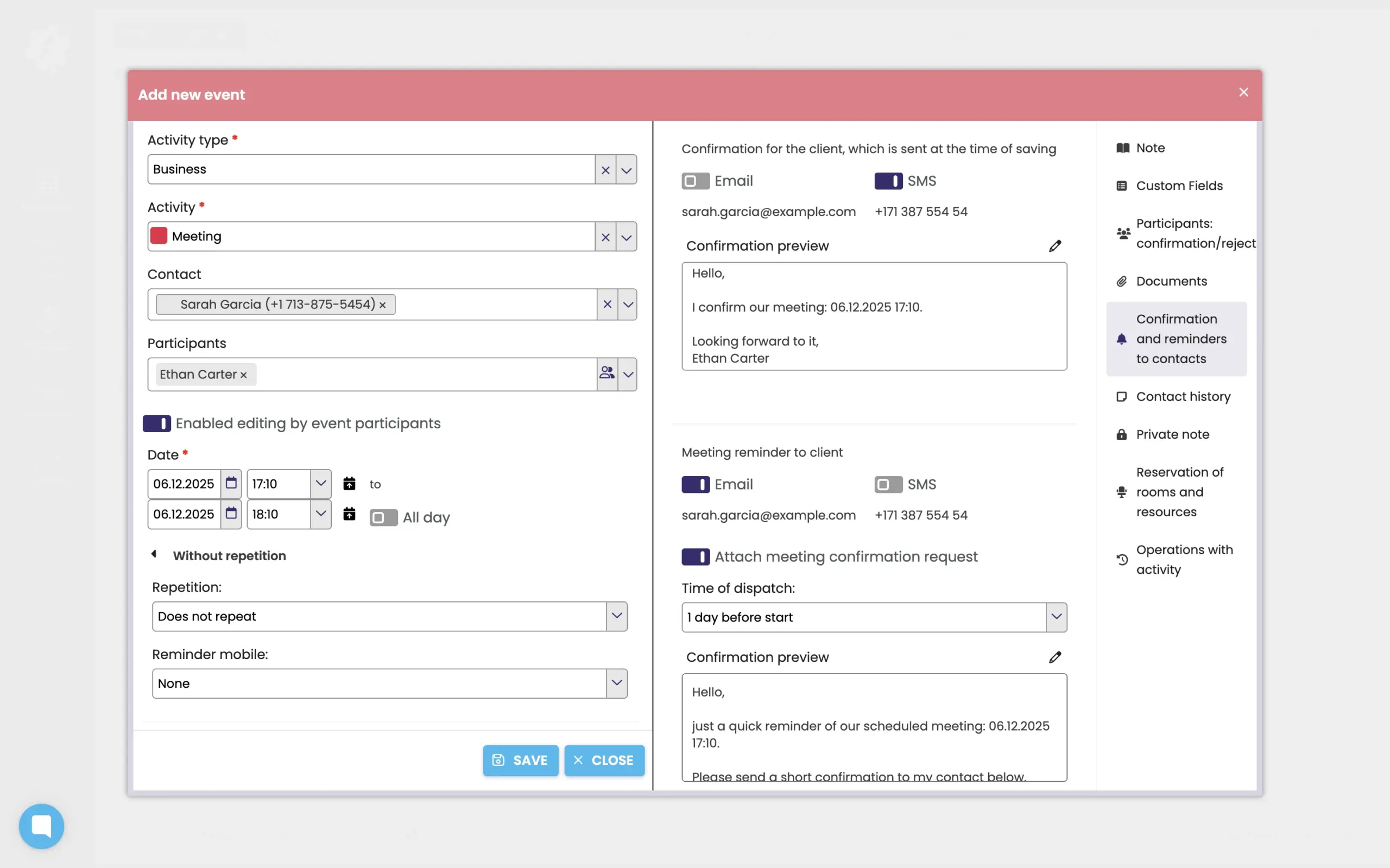 Order in client relationships and B2C sales campaign organizationAutomatic building of client relationship history and unique client records – all created directly from activities in the calendar