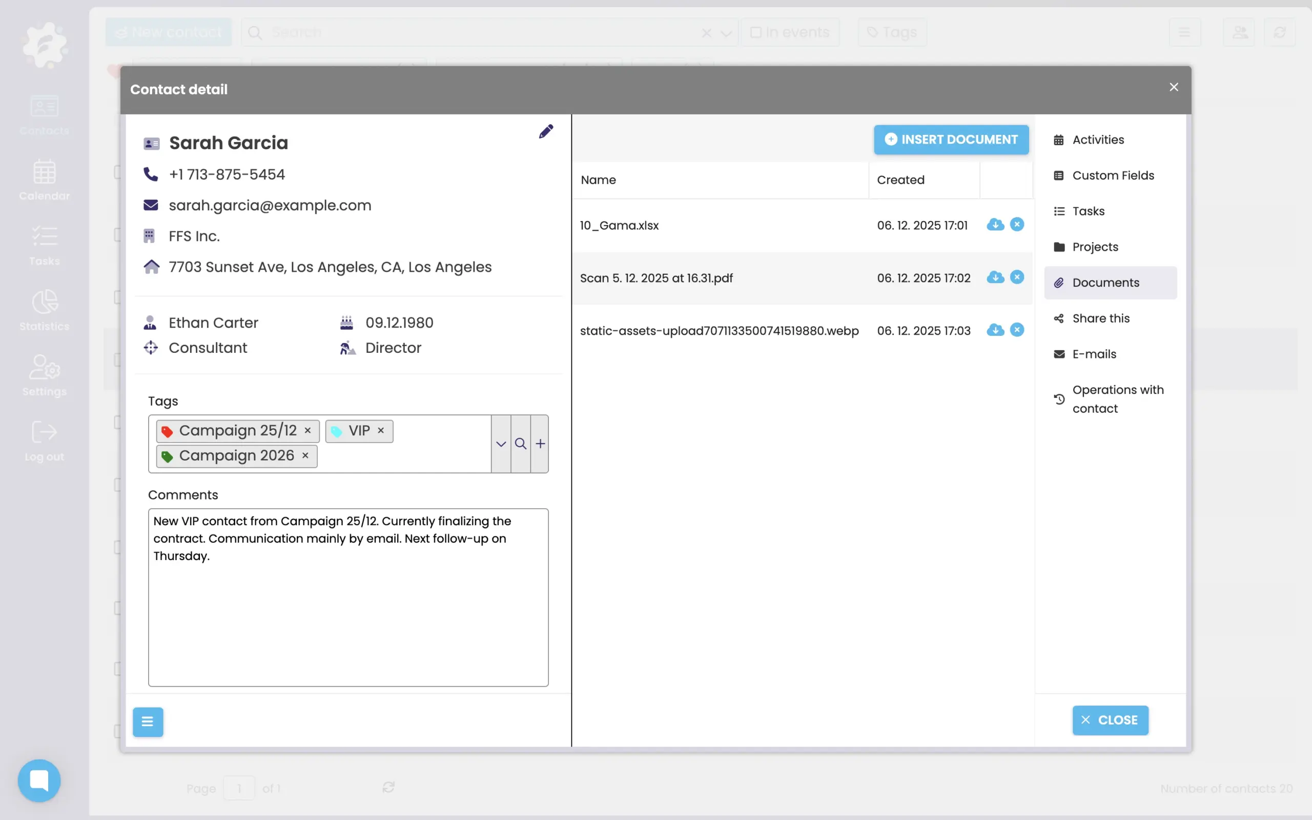 Thanks to the created relationship history, you can work with your contacts smartly and intuitively – you can widely filter, search, freely tag contacts, or record emails and documents.