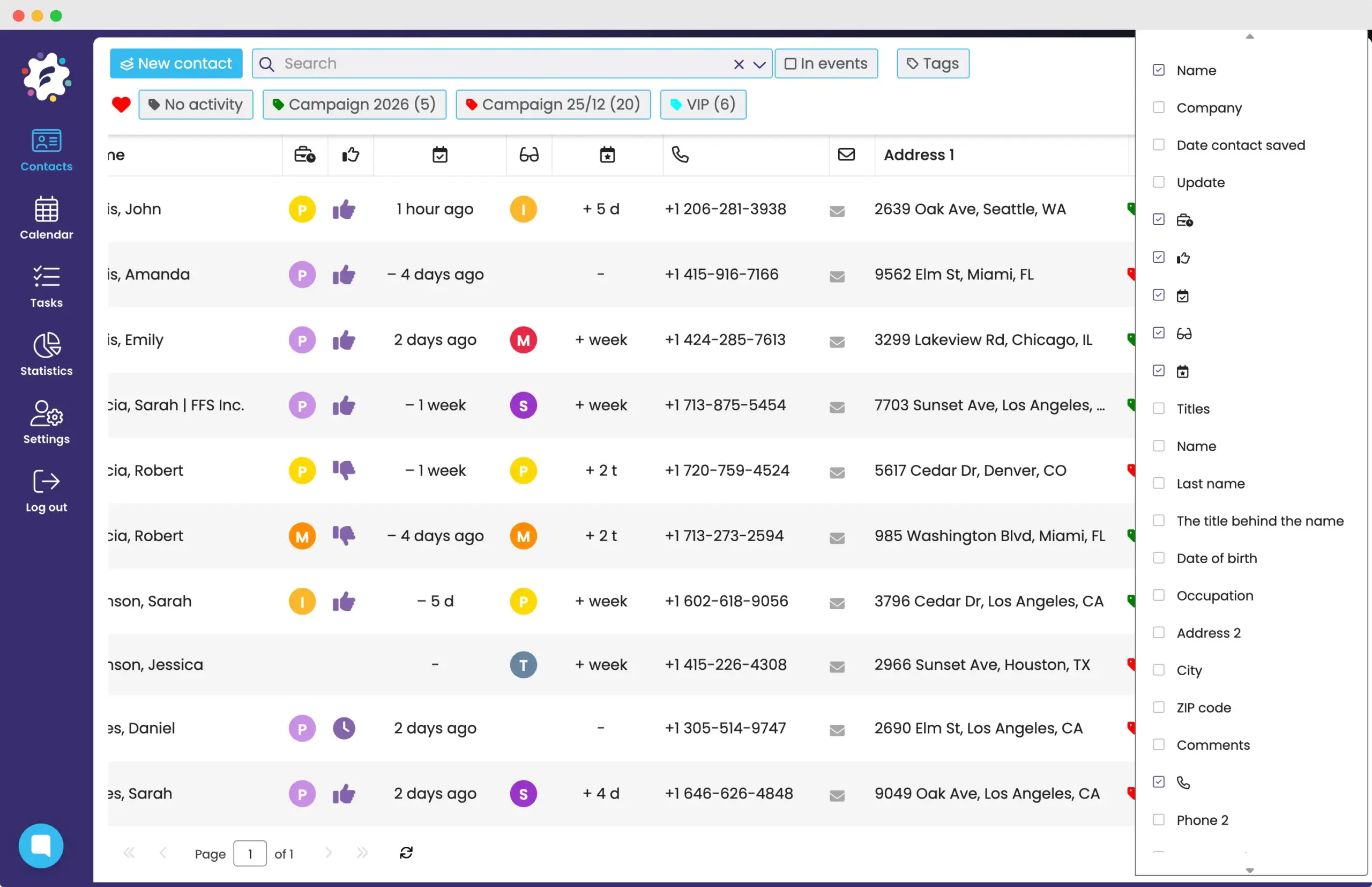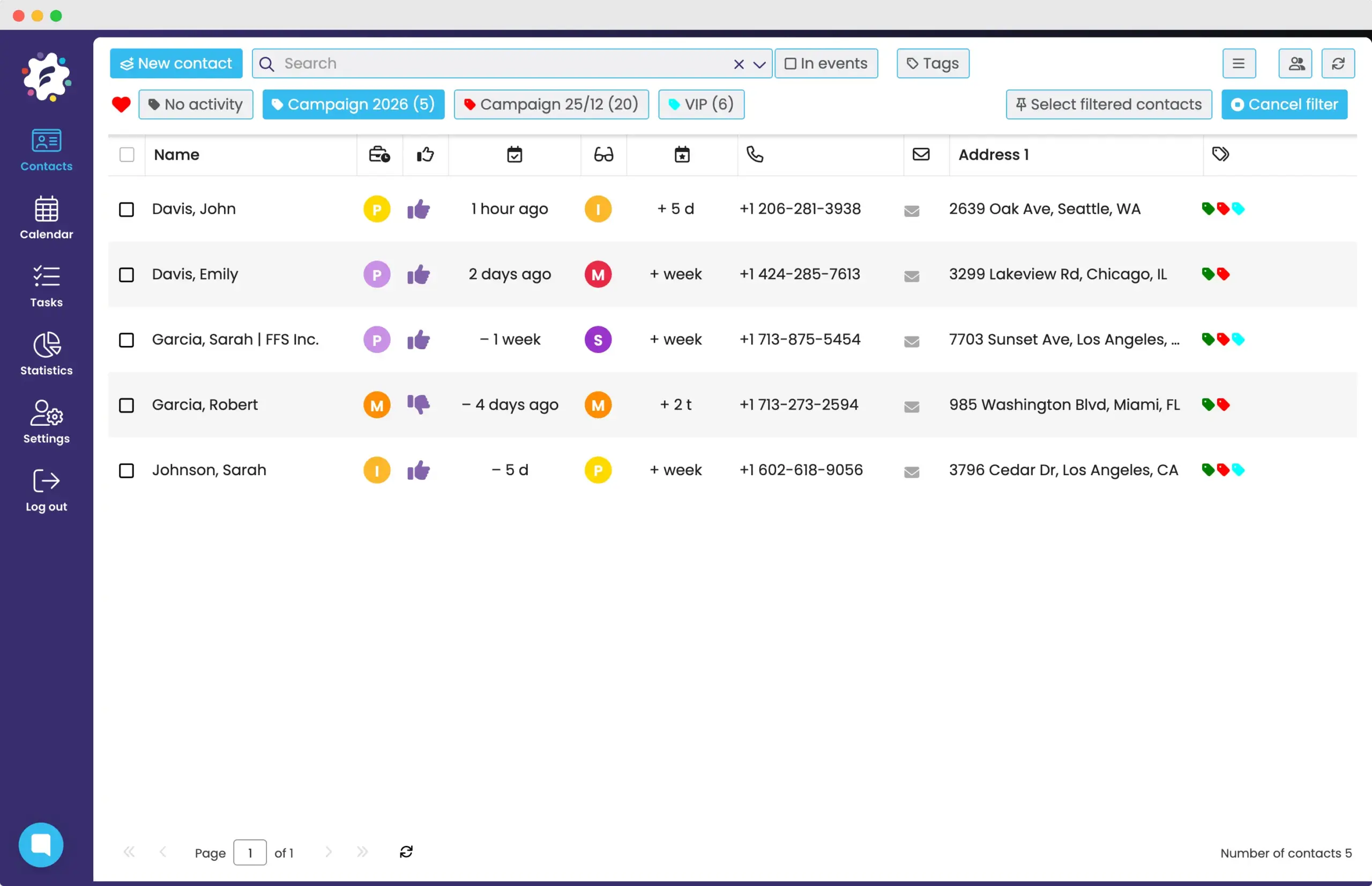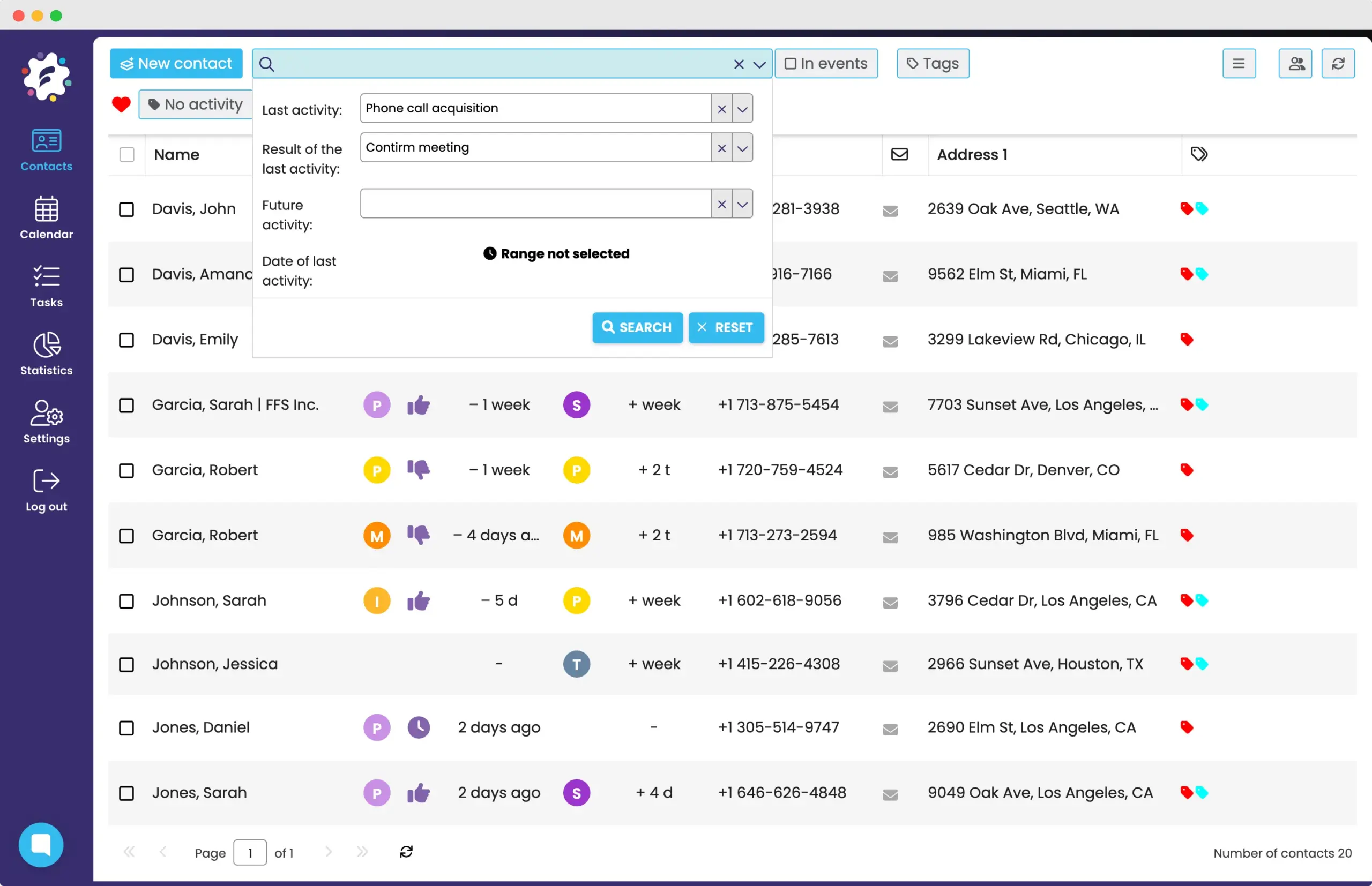 Thanks to sorting contacts, for example, according to the last activity, regions, last activity results, or future activities, you will have a complete overview of the right clients in a few clicks.