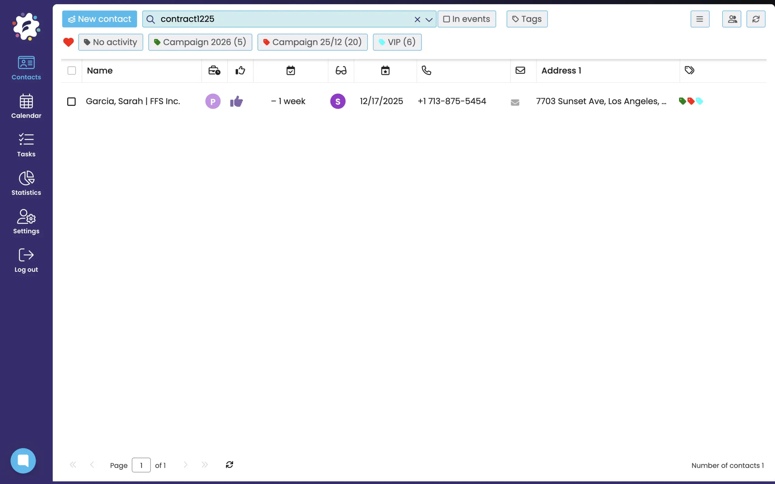 Thanks to the full-text search, you can easily and quickly display everything you need. For example, all contacts with the keyword “contract.”